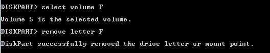 - You can use either the volume Ltr or number in the next command. For example , if I want to remove my drive F then I will type either select volume F or select volume 5 and hit enter. After selecting the drive I will type another command remove letter F and then press enter.