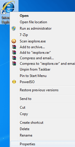 Steps To Always Start Private Browsing in Internet Explorer 1. Right click on the Internet Explorer and select the Properties. There are two ways to do that either from desktop shortcut or from the task bar shortcut(if using Windows 7/Windows 8) as you can see below.